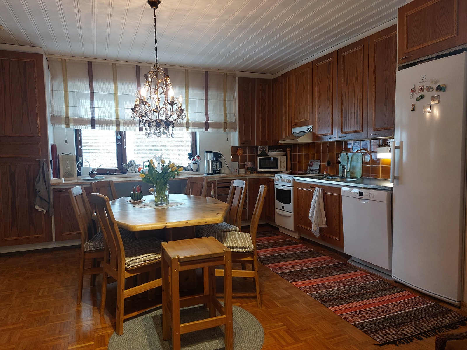 Tilava tiilirunkoinen talo hyvältä paikalta. Neljän makuuhuoneen lisäksi erillisellä sisäänkäynnillä työhuone jossa keittiö, wc/suihku ja kaksi parvihuonetta. Sähkölämmityksen lisäksi varaava takka/leivinuuni ja ilmalämpöpumppu. Tilava noin 30 m2 autotalli.